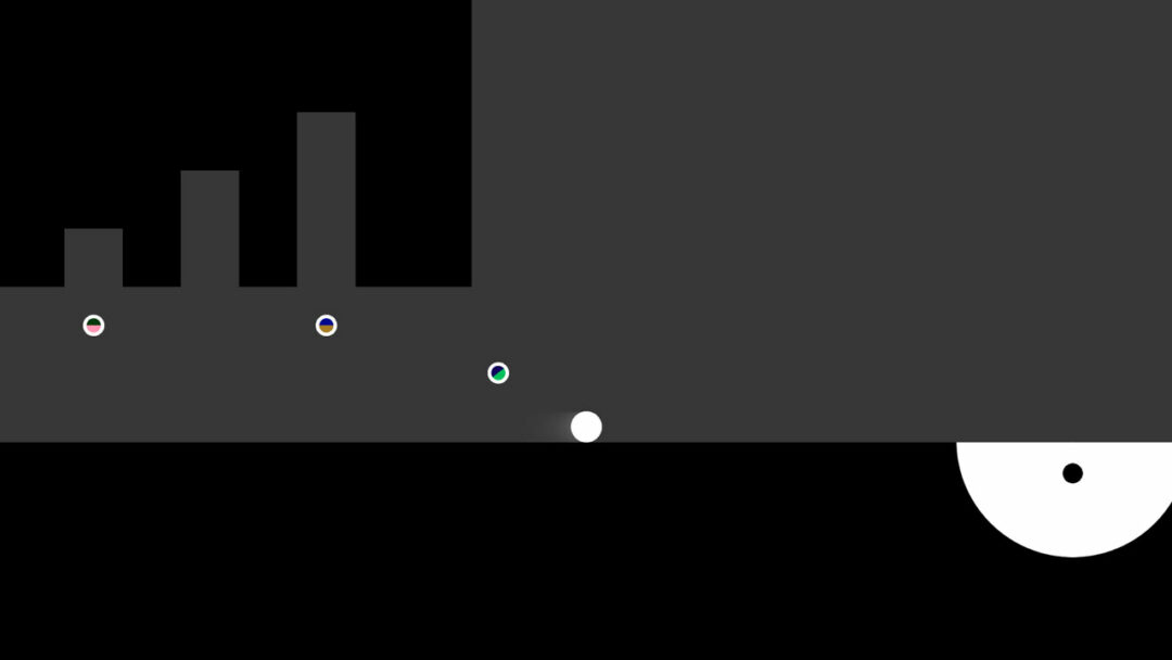 Les graphismes sont très simples, seulement des formes géométriques et des aplats de couleurs, comme vous pourrez le voir sur les captures d'écrans. Malgré tout, ce n'est pas pour autant que je cataloguerais dans les "petits jeux", car c'est un produit fini et très bien réalisé. Les niveaux sont bien vivants et animés et les couleurs très vivent changent à chaque étape du niveau, symbolisant l'augmentation de difficulté.