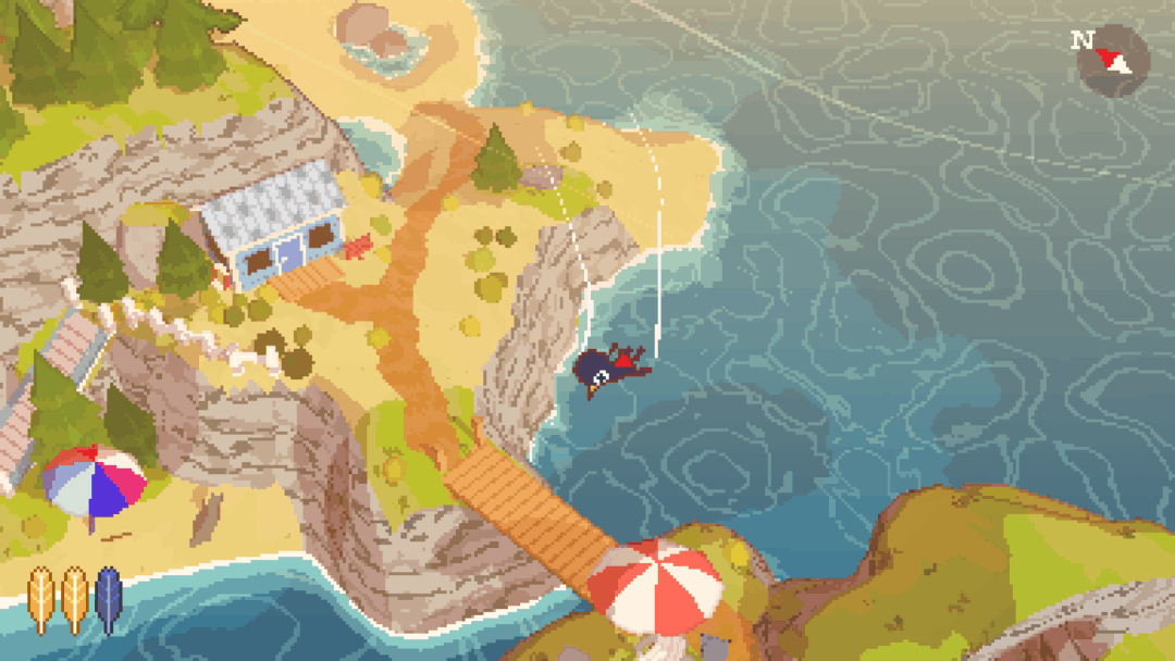 Pour cela, il faudra récolter des plumes qui serviront à augmenter l'endurance de Claire et lui permettre de voler plus haut ou de grimper plus longtemps, à la manière du dernier Zelda. Les obtenir demandera en général de fouiller les environs ou de résoudre des petites quêtes. L'île est également remplie de plein de petits objectifs, de gens à aider et d'objets cachés à découvrir. On peut arriver à la fin en une bonne heure de jeu sans trop de soucis et il en faudra 2 ou 3 autres pour terminer tout ce qu'il y a à faire.