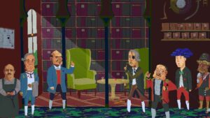 On pourra par exemple se demander à quoi servent ces étranges tableaux dans toutes les salles, ou si les pièces d'échecs posées un peu partout ont une utilité. Mais il y a des mystères un peu moins évidents et il est clair qu'il y a une histoire bien plus ambitieuse cachée dans ce manoir. On peut par exemple s'amuser à reconstituer la liste des habitants et des domestiques de notre défunt oncle. Je n'ai aucune idée de si ça a une utilité, mais j'ai griffonné un début d'organigramme. On peut aussi s'interroger sur les ancêtres de notre protagoniste et même sur l'histoire du continent tout entier. Comme le dirait Feldup, le jeu est un véritable terrier de lapin qui cache des mystères dans des secrets dans des énigmes…