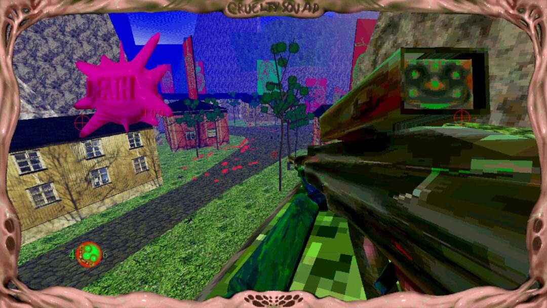 Avec ses textures grossières et son amour pour la résolution 640x480, Cruelty Squad ressemble fortement à un mod de Quake sous LSD. Je vous renvoie aux captures d'écran pour que vous vous rendiez compte du niveau de mauvais gout qui nous est proposé et croyez-moi sur parole, la partie audio est tout aussi horrible. En tout cas, on ne peut pas lui reprocher son manque de personnalité ! Cruelty Squad est en effet un jeu bien à part, qui est bourré d'idées complètement folles.