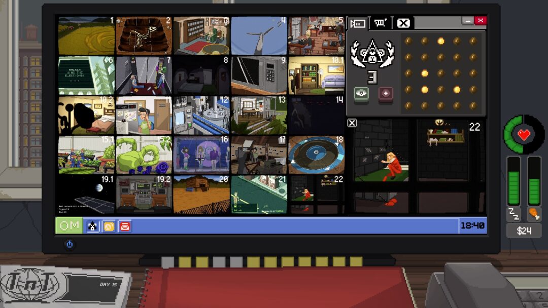 On ne nous donne pas vraiment d'instruction et il faudra donc surveiller les individus pour obtenir des informations en utilisant leurs dialogues et un moteur de recherche. On devra également gérer notre faim, notre fatigue et notre argent, ce qui va nous obliger à faire des choix et nous empêcher d'être à 100% du temps dans la surveillance et potentiellement rater des choses. Tous ces écrans sont donc autant de petits puzzles à résoudre afin de comprendre pourquoi la caméra a été placée ici et qui sont les gens que l'on observe. C'est ici que l'on pourra trouver une grande partie de l’intérêt du jeu, chaque écran représentant potentiellement une petite histoire parfois drôle, parfois loufoque, parfois tragique.