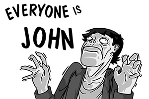 Je suis alors tombé sur "Everyone is John". Dans ce jeu, on incarne un personnage fou qui est contrôlé par des voix dans sa tête. Tous les joueurs dirigent donc le même personnage, chacun ayant son propre objectif.