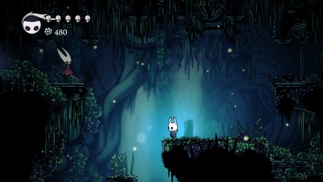 Hollow Knight est un jeu de plateformes en 2D de type metroidvania. Il n'est pas linéaire et nous sommes donc invités à explorer à notre convenance en espérant trouver des objets et des pouvoirs intéressants afin d'atteindre de nouvelles zones.
