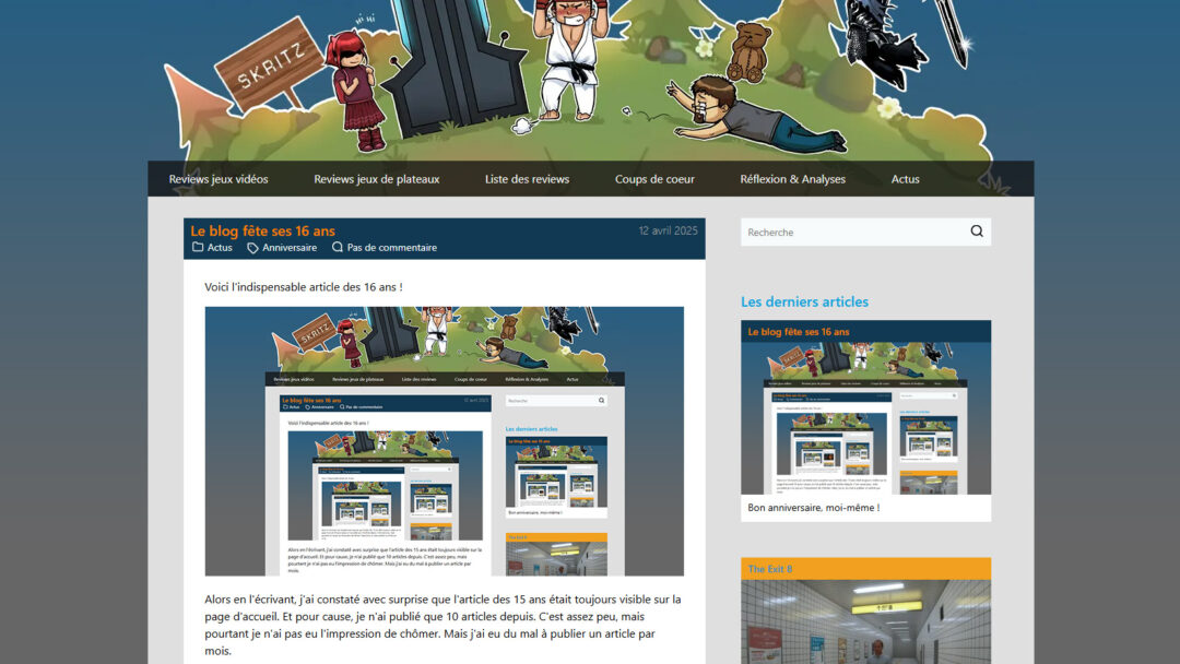 Alors en l'écrivant, j'ai constaté avec surprise que l'article des 15 ans était toujours visible sur la page d'accueil. Et pour cause, je n'ai publié que 10 articles depuis. C'est assez peu, mais pourtant je n'ai pas eu l'impression de chômer. Mais j'ai eu du mal à publier un article par mois.
