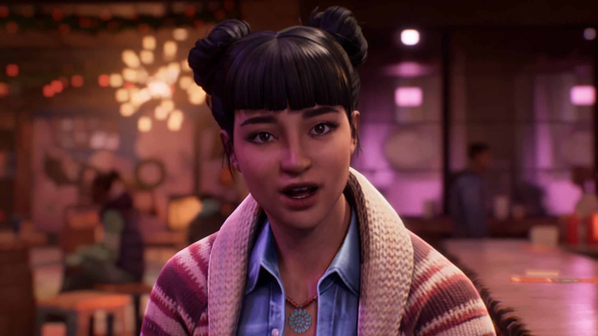 On y incarne à nouveau Max, et je me suis rendu compte qu'elle m'avait manqué. Dans cet opus, elle est plus âgée et est devenue une jeune adulte. Elle s'est installée dans une nouvelle ville après avoir beaucoup voyagé et enseigne désormais dans une université privée. J'aime beaucoup ce qu'ils ont fait de ce personnage et j'ai apprécié découvrir cette version plus mure et plus indépendante. Car oui : au grand regret de certaines personnes, Chloé ne sera pas présente dans cet épisode. C'est d'ailleurs à nous de décider de ce qui s'est passé lors du premier Life is Strange durant un dialogue où Max évoque son passé.
