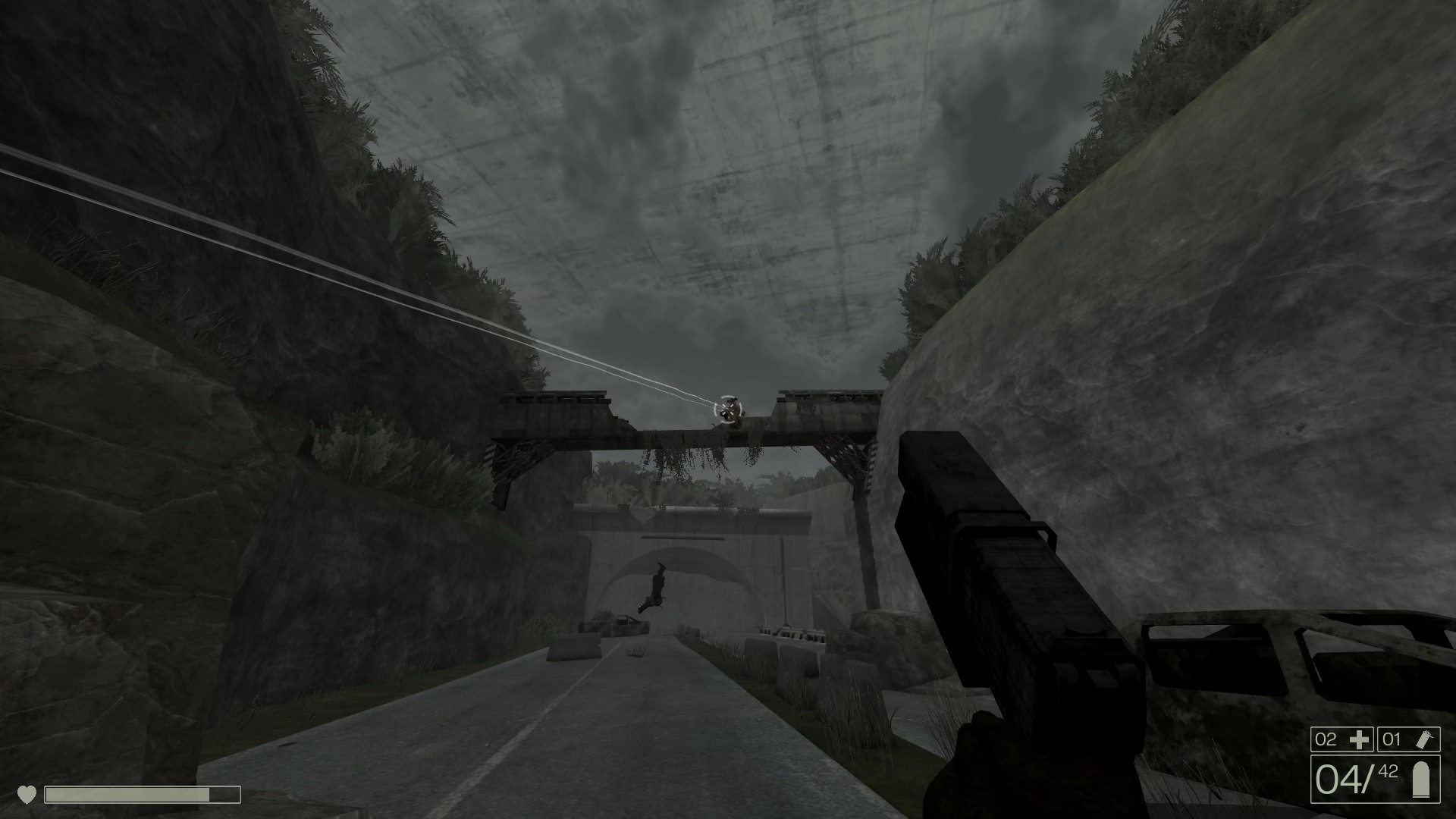 Une mégastructure pourrait impliquer un open world délirant, mais il n'en est rien. Si le décor du jeu semble gigantesque, l'expérience est en revanche compacte et assez linéaire. On peut en venir à bout en quelques heures. La partie tir est assez plaisante et le jeu ne propose que 3 armes : un pistolet, un fusil à pompe et un snipe... Après tout, pas besoin de plus. On a également quelques mécaniques intéressantes comme cette gestion des dégâts assez originale, qui ajoute des malus à la visée ou au déplacement en cas de blessure. Mais il ne faut pas s'y tromper, la principale qualité du jeu est avant tout son atmosphère.