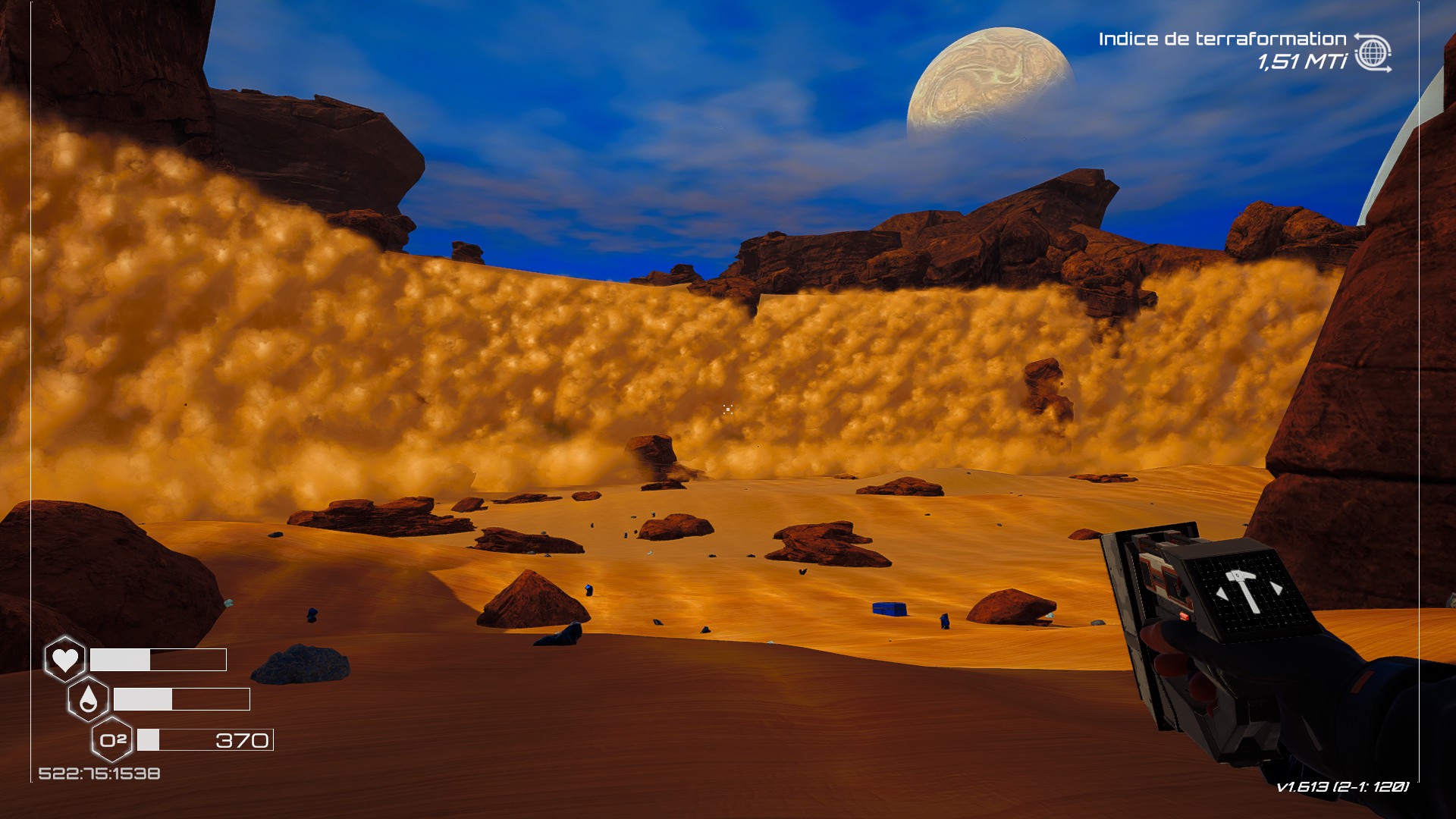 Il y a longtemps que je n'avais pas vu un titre aussi explicite. En effet, Planet Crafter est un jeu de crafting et un peu d'exploration. Comme son nom l'indique, on est envoyés seuls sur une planète hostile afin de la rendre habitable. Le processus de terraformation implique de faire monter la température, de changer la pression et d'augmenter la concentration en oxygène, tout ceci à l'aide d'immenses machines. Le jeu se rappelle un peu comme un Subnautica, avec plus de construction, mais moins d'exploration. En effet, la gestion de l'oxygène est au coeur du jeu et la construction de base est très similaire.
