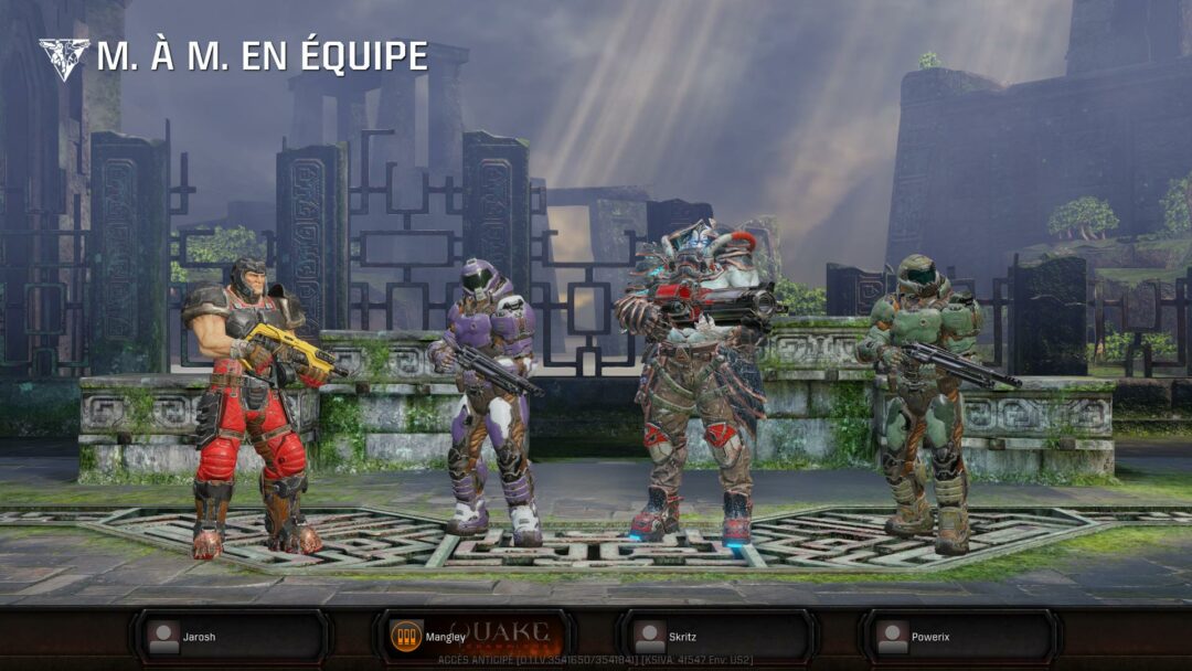La particularité de ce "champions" par rapport à la série des Quake est en effet de proposer des classes de personnages, possédant chacune des caractéristiques différentes ainsi qu'un pouvoir unique. Ce système parait donc taillé pour un jeu par équipe comme Overwatch par exemple et mal adapté à du gameplay de type chacun pour soit.