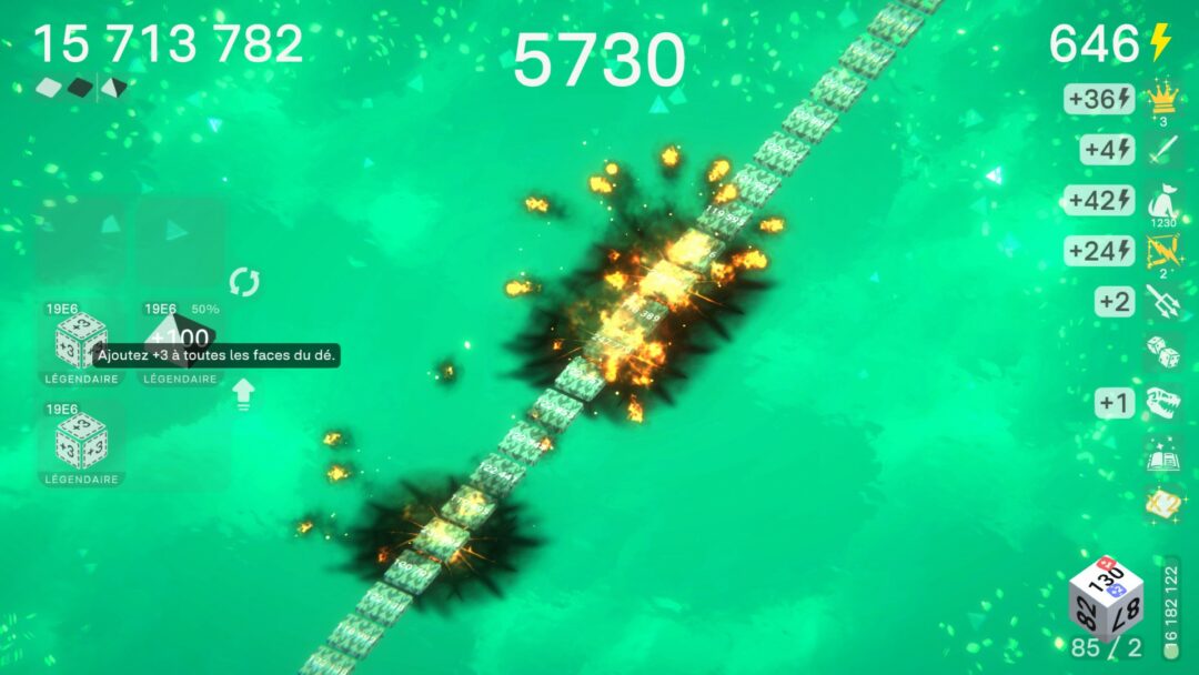 Deuxièmement, le jeu est super satisfaisant ! Voir les chiffres grimper et dépasser le million au bout d'un moment est vraiment très gratifiant. Beaucoup de tentatives s'essoufflent assez facilement à cause d'un build raté. Mais lorsque nos choix fonctionnent, on peut aller beaucoup plus loin dans les niveaux ! Oui, je suis quelqu'un de simple, mais je pense que je ne suis pas le seul à aimer les gros scores.