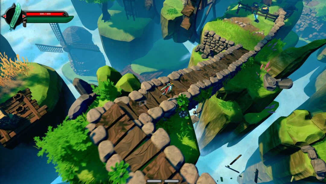 En plus de découvrir de nouvelles histoires, on peut monter en niveau et ainsi débloquer quelques améliorations augmentant les possibilités offertes en combat et améliorant notre mobilité. On peut aussi fabriquer des épées qui ont chacune leur pouvoir spécifique mais qui servent aussi de clé : elles se révéleront très utiles car ces portes cachent souvent des chemins alternatifs, des coffres ou des petits secrets.